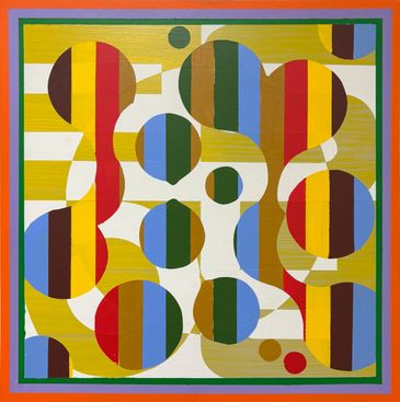 For Ron Adams form comes through the careful interplay of colour, geometry and text. His paintings are explorations of these elemental parts and their convergence shapes his idiosyncratic visual language. Adams has developed this language over many years and through conversations with him, it is evident that he thoughtfully selects his colours, shapes and words with specific subjective intentions, because like many of us, he makes art as a way of trying to process and understand the world around him. Like a filter, Adams distills the clutter, the noise of our contemporary world through a process of breaking down his chosen forms. He reconstructs common universal symbols with a positive chromatic intensity. He takes a word and gives it pictorial status. He lifts cartoon characters embedded within our collective pop culture memories and reminds us of their sweet simple symmetry.